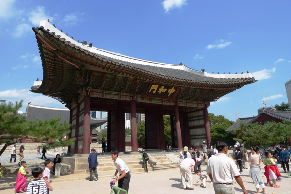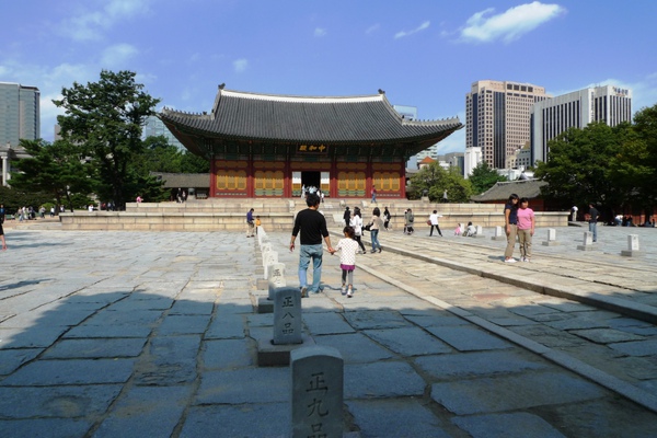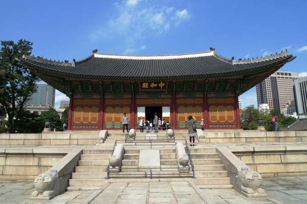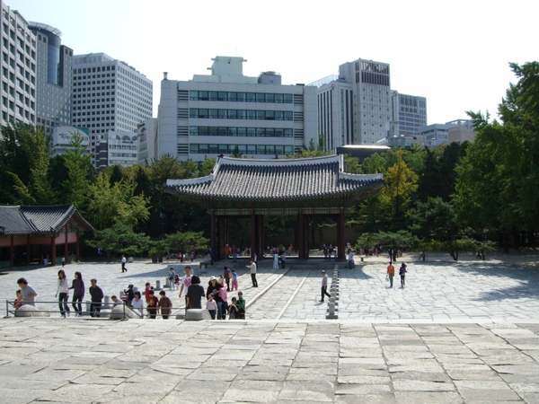 德壽宮風景非常美麗一進去就可以看到韓式宏偉的宮殿前面則是古代皇帝上朝的大空地,