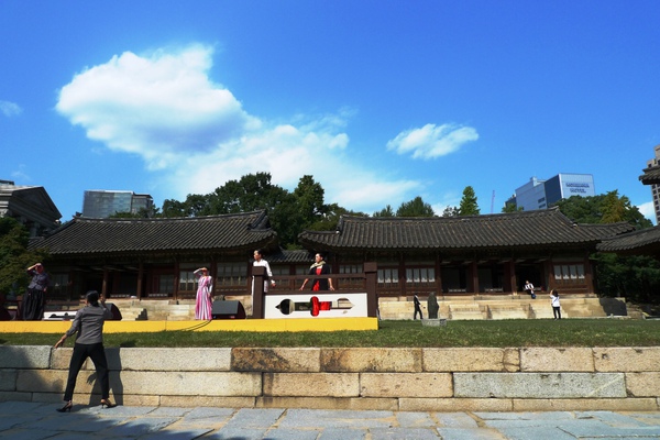 吃完早餐之後我們到了可以免費韓福體驗的德壽宮덕수궁,德壽宮在132市政廳City Hall(시청)站的1、2號出口,或201市政廳站的12號出口,步行約3分鐘即達德壽宮大漢門(跟著人群走就對了)門票₩1,000(今天免收門票),早上11點 下午兩點 下午三點半都有守門將交接儀式,但這一天沒有因為中秋節的關係吧,園區內有德壽宮現代美術館遲德壽宮門票可以免費參觀,但這一天也沒開。