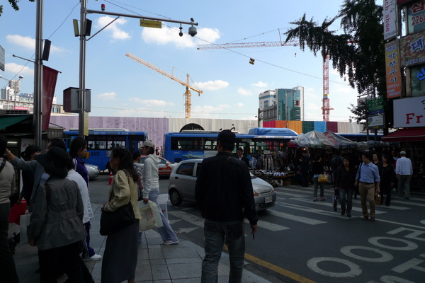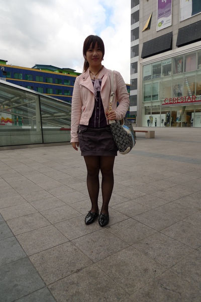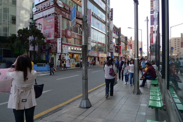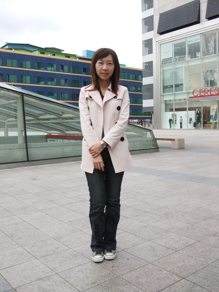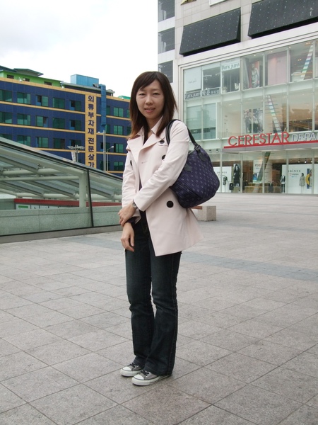 在廣場拍一下今日穿搭,我們的穿著好現在KR顯得很奇怪,因為他們的女生都喜歡穿暗色系的衣服