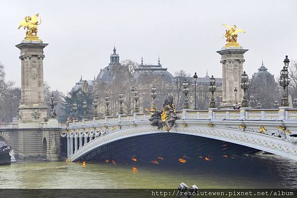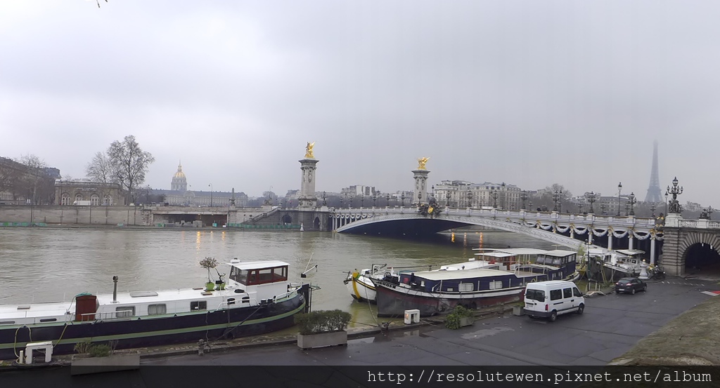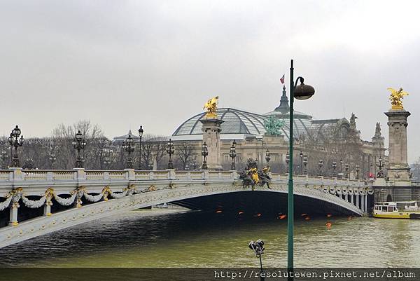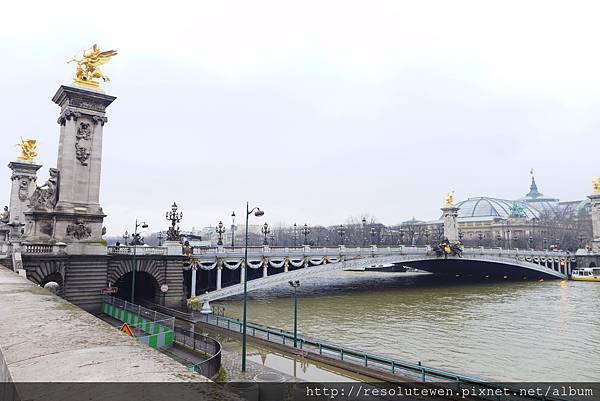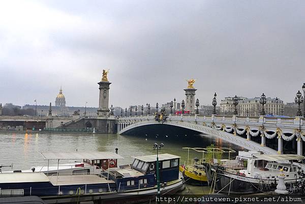 不過我們背包客就是既來之則安之,我們把明天的行程改到今天, 首站就是亞歷山大三世橋, 我們搭地鐵8號線不用轉車從巴士底往Balard方向到Invalides站,因為時間有限我們沒有參觀榮軍院,所以我們出站之後就過橋往回走(跟榮軍院反方向走就對了)
