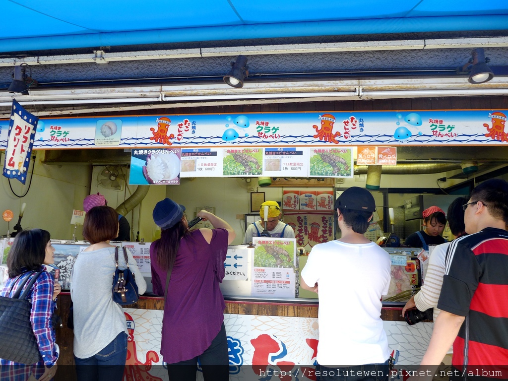 這間店好像很有名~好多人排隊 (賣魷魚片-把整隻魷魚壓成扁扁的零食)