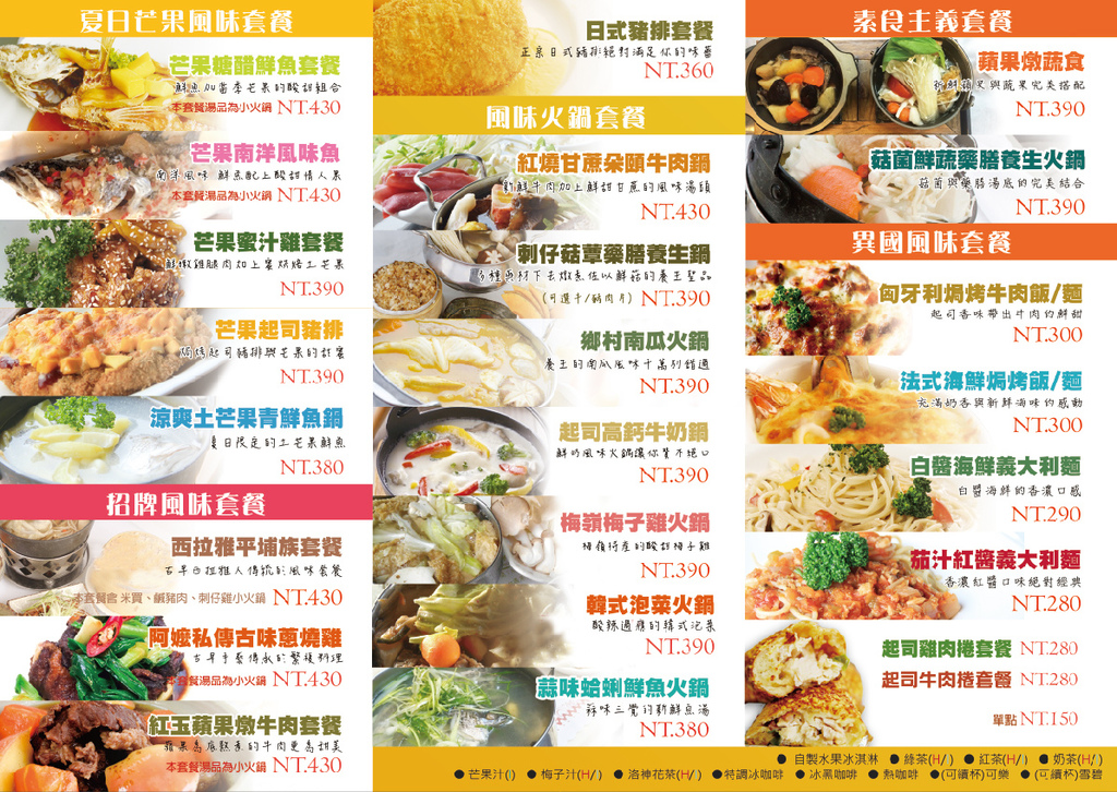 菜單來一下,乍看不是太平價,但以食物的美味程度跟美景這兩點來看,我覺得蠻值得的。(菜單來源:店家官網)